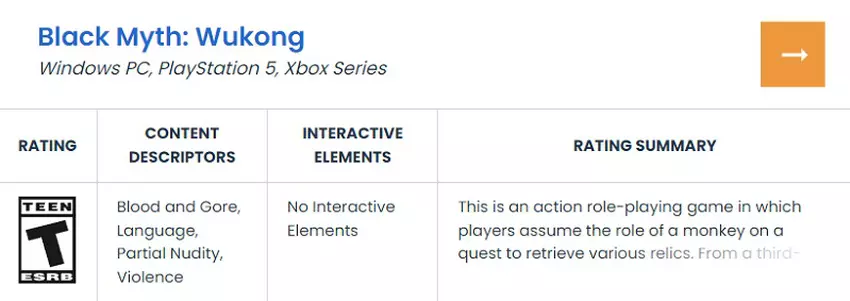 Auf der Website der Klassifizierungsagentur ESRB wurden Informationen über die Altersfreigabe der Xbox Series-Version von Black Myth: Wukong veröffentlicht. Normalerweise geschieht dies kurz vor der offiziellen Ankündigung, so dass große Neuigkeiten von Game Science und Microsoft bald folgen könnten.