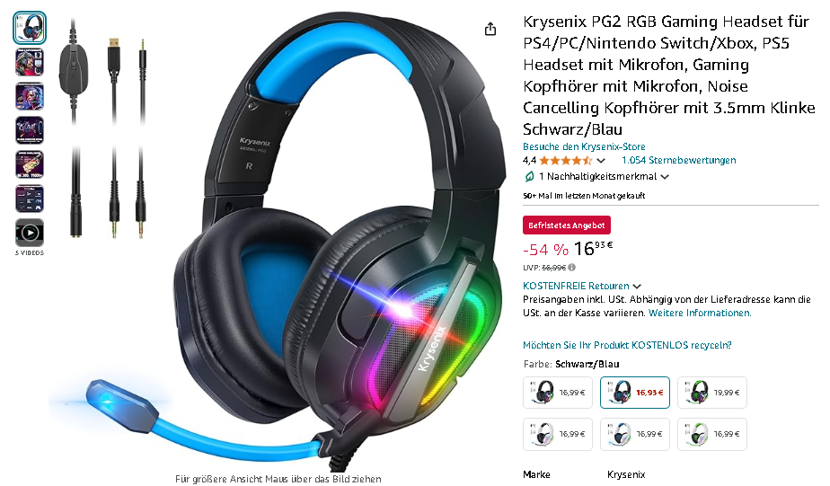 Das Krysenix PG2 Gaming Headset ist aktuell für 16,93 € erhältlich, reduziert von 36,99 € - das entspricht einer Ersparnis von 54%! Ein Angebot, das Gaming-Enthusiasten begeistern wird.