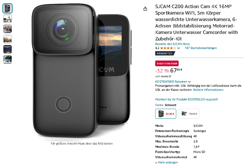 Ergreifen Sie die Gelegenheit: SJCAM C200 zu einem Top-Preis auf Amazon.de
