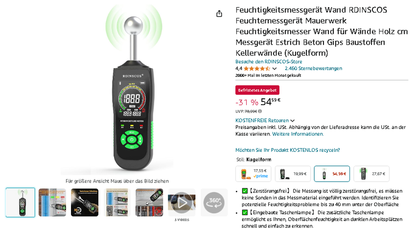 RDINSCOS Feuchtigkeitsmessgerät – Jetzt 24€ sparen!