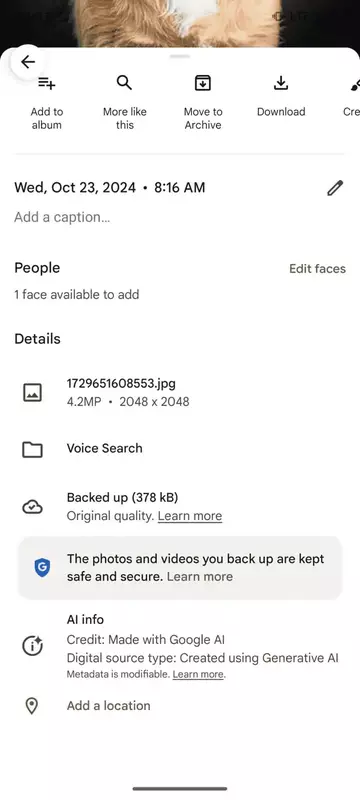 Die neue Funktion wurde in der Version 7.3 von Google Fotos entdeckt. Zum Zeitpunkt des Tests war diese Option jedoch noch nicht in Version 7.4.0.687342855 enthalten, was auf ein Update auf Serverebene hindeuten könnte. Google plant, diese Informationen für Bilder verfügbar zu machen, die mit Magic Editor, Magic Eraser und anderen KI-basierten Tools bearbeitet wurden.
