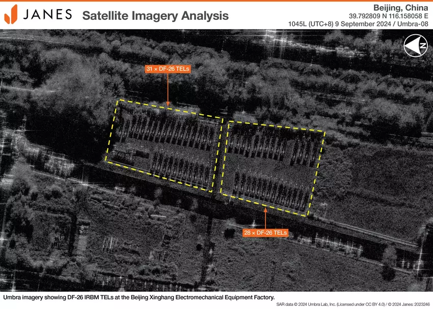 Janes berichtet unter Berufung auf Satellitenbilder eines der Unternehmen, dass China die Produktion von ballistischen Raketenwerfern Dong Feng-26 erhöht.