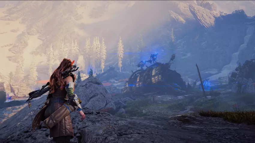 Mit Frozen Wilds gibt es ein riesiges neues Gebiet zu erkunden - eine verschneite Region voller gefährlicher Maschinen und wunderschöner, wenn auch rauer Landschaften. Der Schauplatz ist voll von gefrorenen Seen, Berggipfeln und kalten Einöden, in denen sowohl tödliche Maschinen als auch wertvolle Ressourcen versteckt sind. Der Spieler lernt den Stamm der Banook kennen, der sein eigenes kulturelles Erbe, seinen eigenen Glauben und seine eigenen Rituale hat, einschließlich der Verehrung von Maschinen und dem Versuch, die Natur des "Dämons" zu verstehen, der die lokalen Maschinen infiziert.