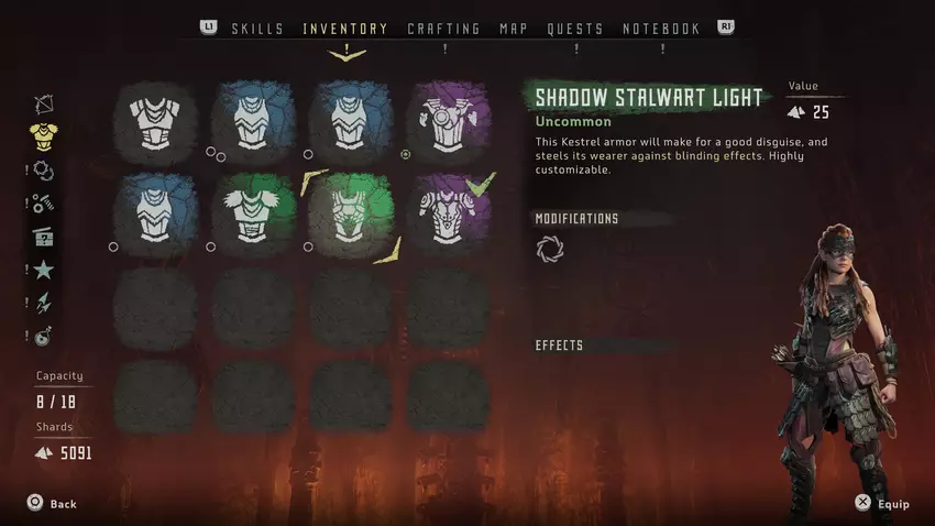 - Stealth-Rüstung: Verbessert Aloys Fähigkeit, unentdeckt zu bleiben, was ideal für diejenigen ist, die es vorziehen, offene Konflikte zu vermeiden und aus versteckten Positionen anzugreifen.