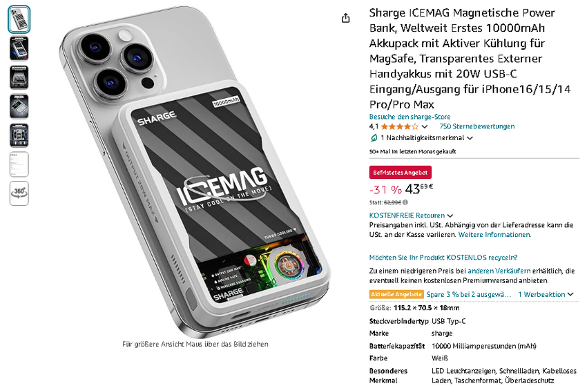 Greifen Sie zur SHARGE ICEMAG Powerbank zum Vorteilspreis auf Amazon.de