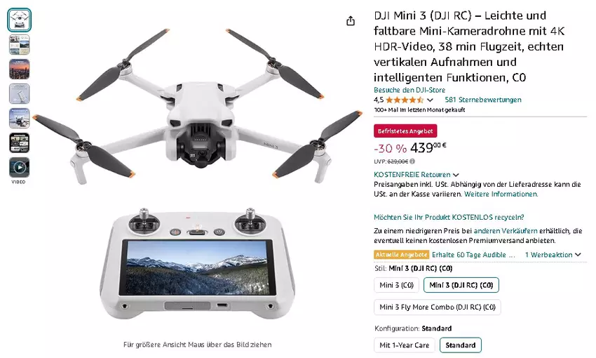 Sichern Sie sich die DJI Mini 3 zum Spitzenpreis auf Amazon.de