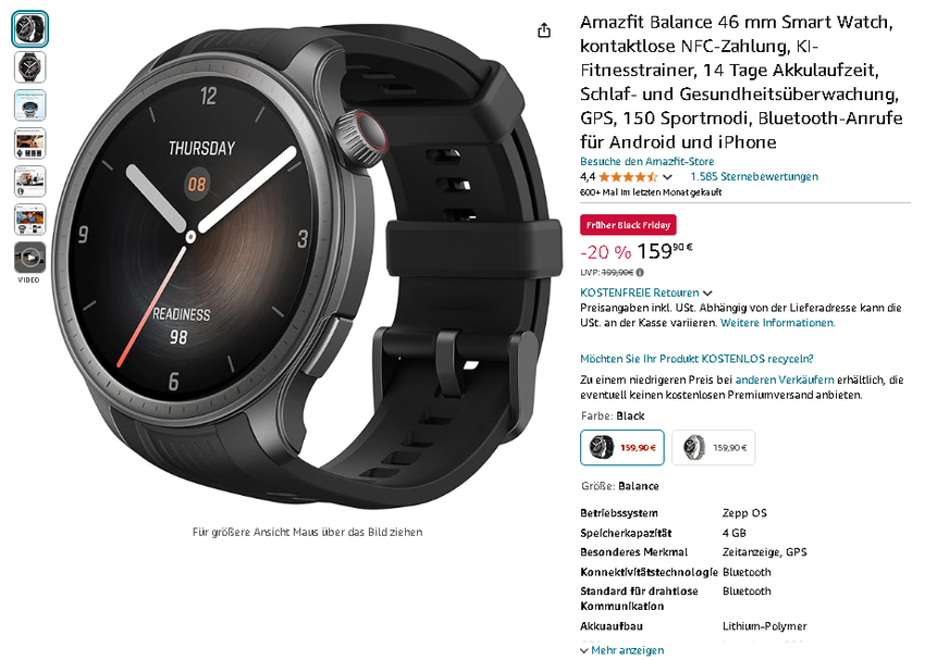 Mit ihrer Kombination aus zukunftsweisender Technologie, umfassenden Fitness-Features und dem aktuellen Sonderpreis ist diese Smartwatch ein echtes Schnäppchen. Die Verschmelzung von KI-Innovation, Premium-Design und dem attraktiven Rabatt macht die Amazfit Balance zur idealen Wahl für alle, die eine moderne, vielseitige Smartwatch suchen.
