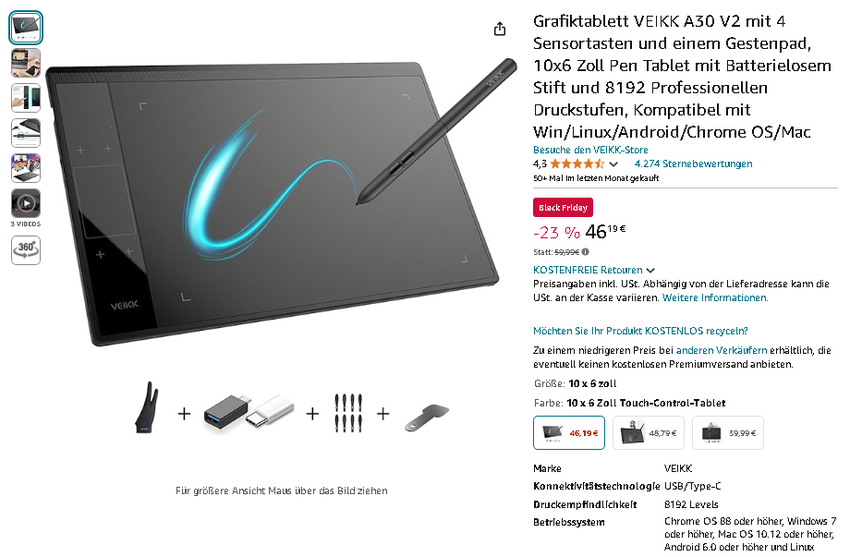 Mit seiner professionellen Ausstattung, der umfangreichen Softwareunterstützung und dem attraktiven Preispunkt ist das VEIKK A30 V2 eine ausgezeichnete Wahl für den Einstieg in die digitale Kreativität. Greifen Sie zu, solange das Angebot gültig ist!