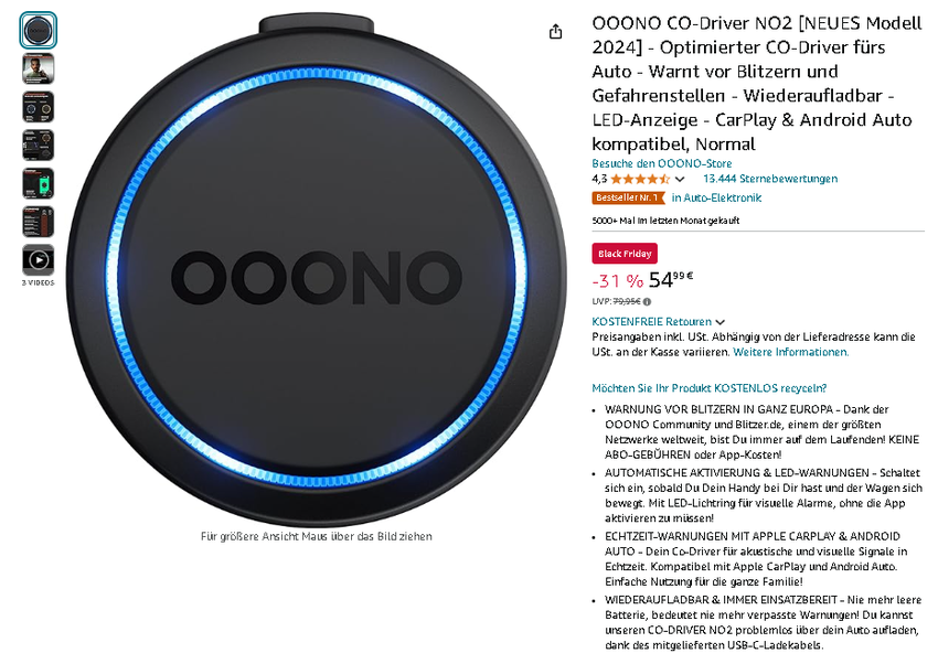 Der innovative Fahrassistent ist jetzt für 54,99 € statt 79,95 € verfügbar - das bedeutet eine attraktive Ersparnis von 31%! Eine perfekte Gelegenheit für sicherheitsbewusste Autofahrer.