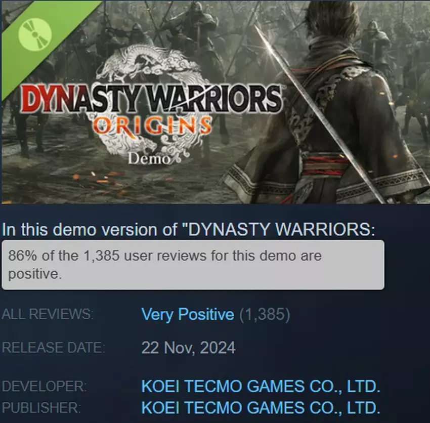 Publisher Koei Tecmo und Studio Omega Force haben ihr Versprechen gehalten und eine Demo zum Musou-Actionspiel Dynasty Warriors Origins veröffentlicht.