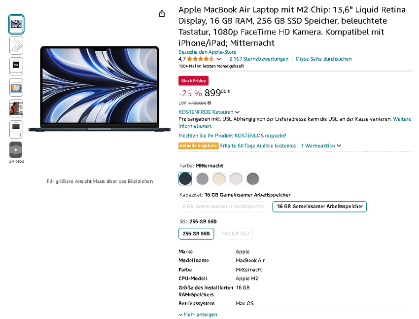 Sichern Sie sich das MacBook Air M2 zum Tiefpreis auf Amazon.de