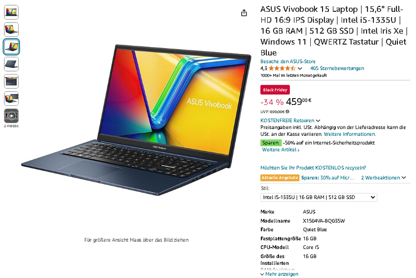 Sichern Sie sich das ASUS Vivobook 15 zum Sparpreis auf Amazon.de