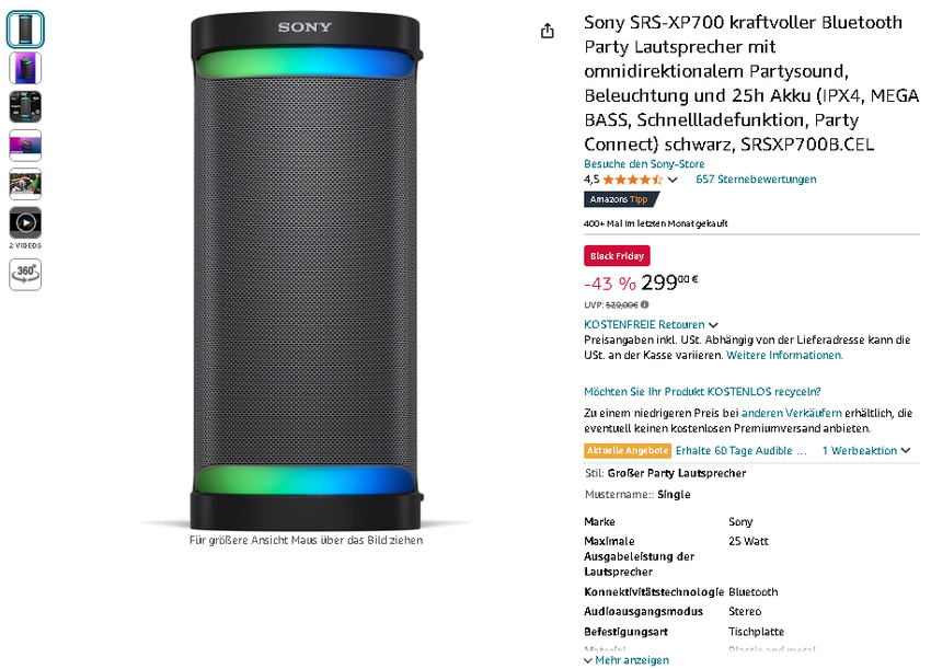 Der Sony SRS-XP700 zum Cyber Monday Hammerpreis auf Amazon.de