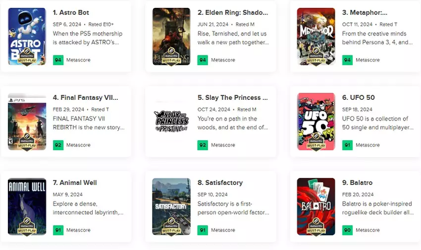 Wir haben bereits über die Rangliste der schlechtesten Spiele des Jahres 2024 auf Metacritic berichtet, jetzt ist es an der Zeit, die besten Neuheiten des Jahres zu nennen.