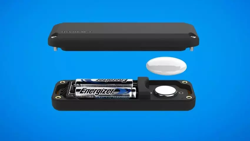 Das Gerät kostet 20 US-Dollar und ist ein spezielles Gehäuse für AirTag, das zwei AA-Batterien mit der 14-fachen Kapazität der ursprünglichen CR2032-Batterie enthält.