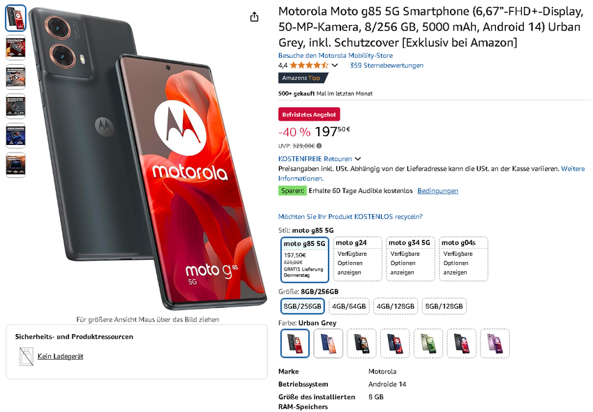 Screenshot der Motorola Moto g85. Quelle: Amazon