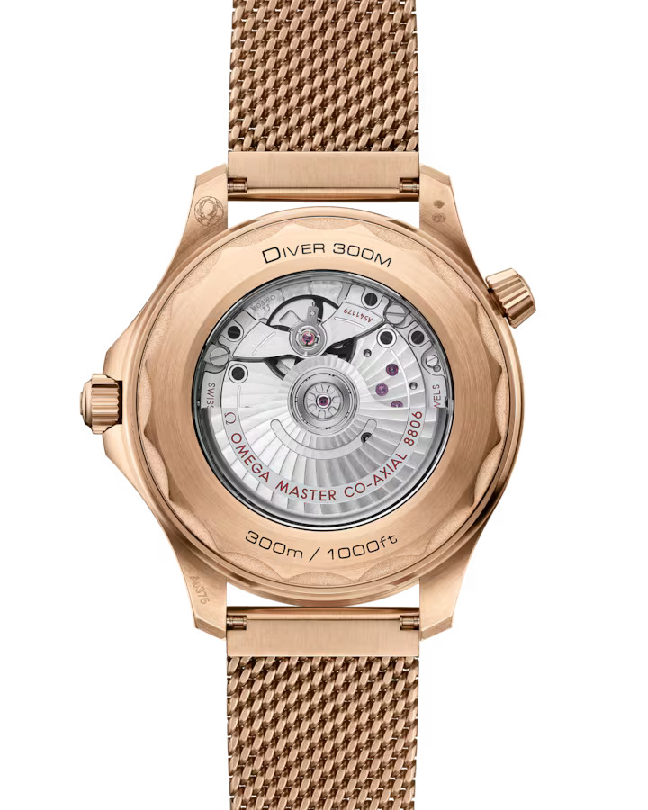 Die Schweizer Marke Omega hat ihre Seamaster Diver 300M-Linie um ein neues Modell in Bronze-Gold- und Burgunder-Farben erweitert. Die Uhr hat ein 42-mm-Gehäuse aus einer einzigartigen Bronze-Gold-Legierung, die zu 37,5 % aus 9K-Gold, Palladium und Silber besteht.