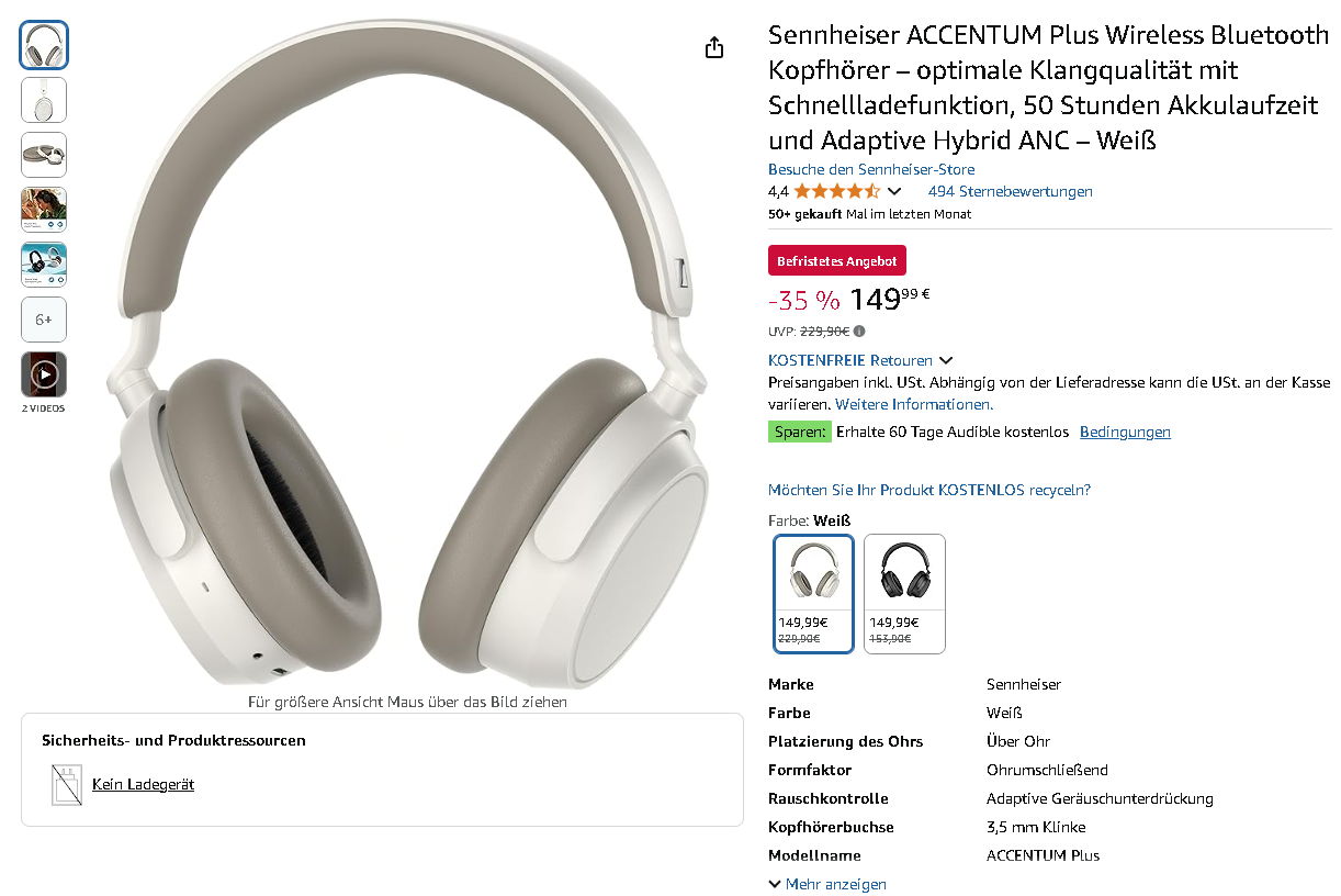 Erleben Sie den legendären Sennheiser ACCENTUM Plus Sound zum Vorteilspreis auf Amazon.de