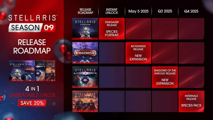 Die folgenden Erweiterungen werden im Jahr 2025 für Stellaris veröffentlicht: