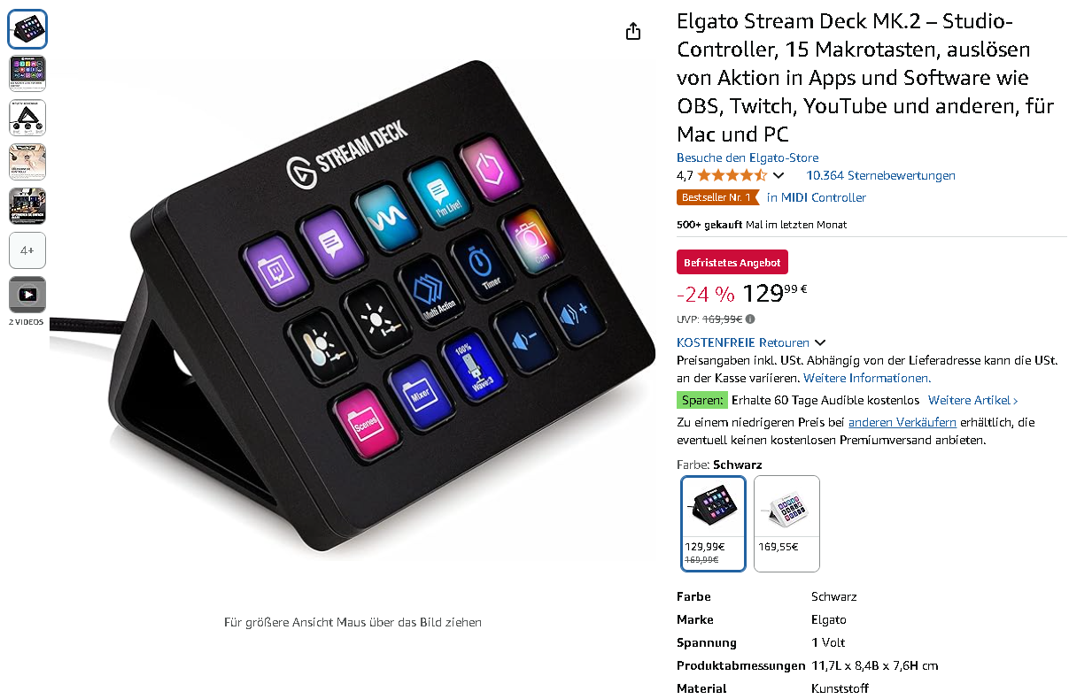 Das Elgato Stream Deck MK.2 ist momentan für 138,90 € 169,99 €, -18%! Eine beachtliche Gelegenheit für alle, die ihre Streaming-Ausrüstung optimieren möchten.