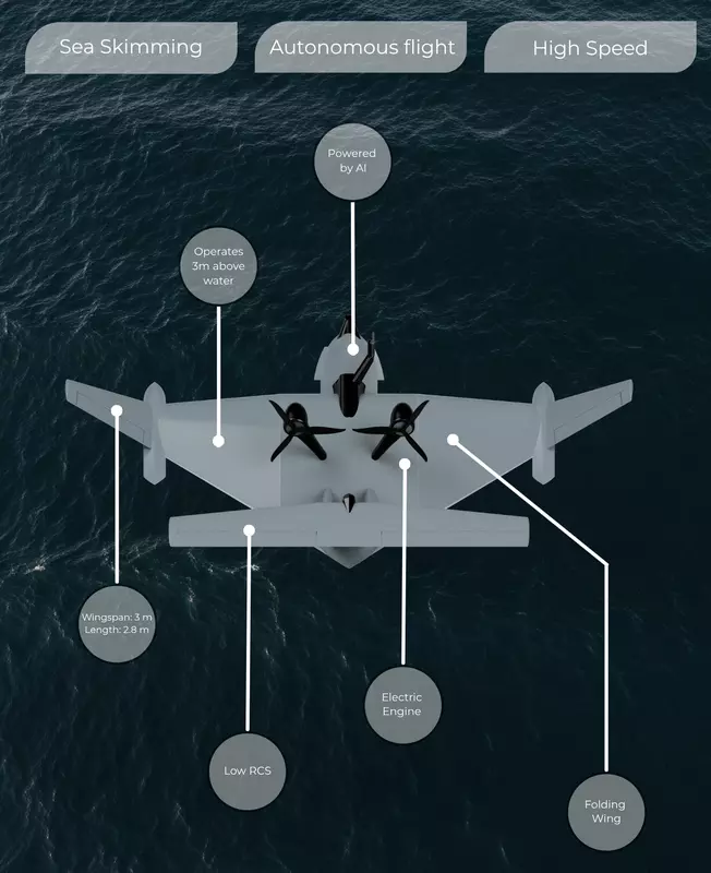 Das türkische Unternehmen Solid AERO hat Talay vorgestellt, das weltweit erste multifunctionale maritime UAV, das den Wing-In-Ground (WIG) Effekt nutzt. Dank dieser Technologie kann das Gerät nur 3 Meter über der Meeresoberfläche fliegen und bleibt für die meisten Küstenradare nahezu unsichtbar.