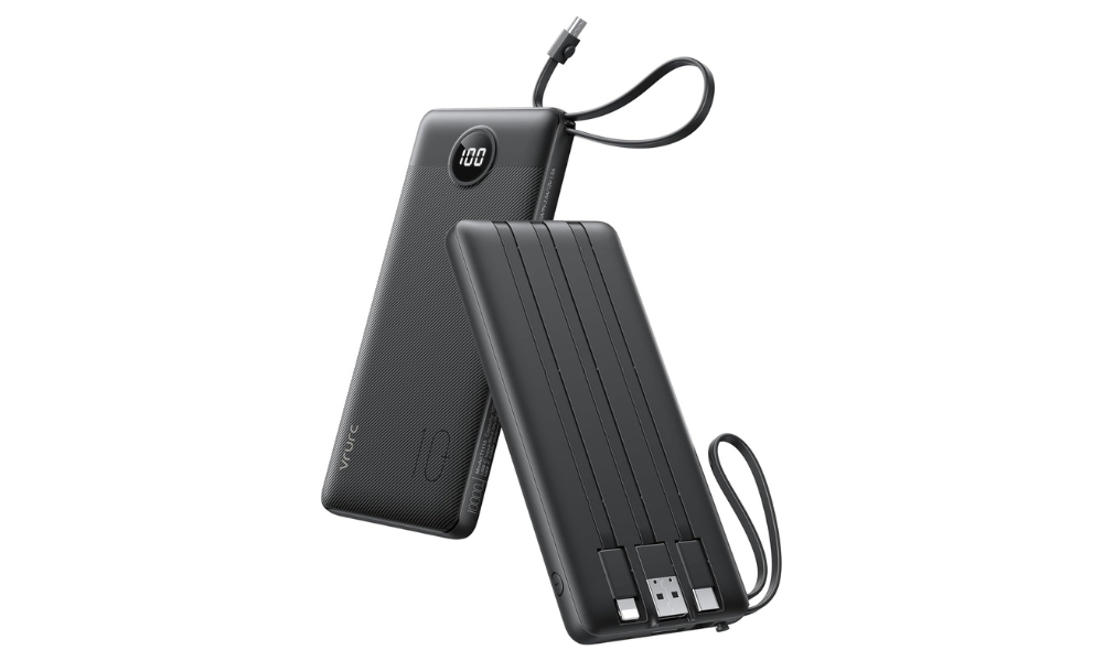 3. VRURC Tragbares Ladegerät - 10000mAh mit eingebauten Kabeln