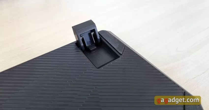 Dunkelgraue Metallplatte mit minimaler bläulicher Tönung und mattem Finish. Keine zusätzliche Politur oder andere dekorative Elemente. Gleichzeitig ist die Oberfläche sehr praktisch, es sind keine Fingerabdrücke darauf. Eine Handballenablage gibt es nicht und anscheinend wird man sie auch nicht separat kaufen können.