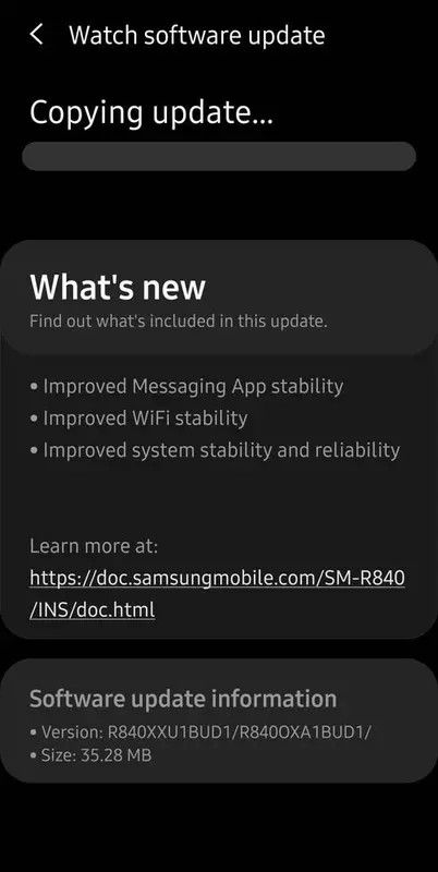 Die Firmware wiegt 35 MB. Sie hat die Build-Nummern R810XXU1FUD1/R840XXU1BUD1 und die gleiche Liste an Änderungen. Die Uhr verfügt über verbesserte Wi-Fi- und Messaging-Apps. Außerdem haben die Entwickler kleinere Bugs in der Software behoben sowie an der Stabilität und Akkulaufzeit der Geräte gearbeitet.