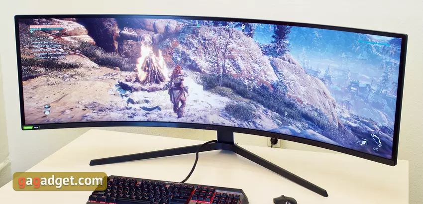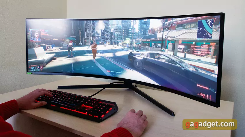 Samsung Odyssey G9 ist in erster Linie ein Gaming-Monitor. Und aus Gaming-Sicht ist alles perfekt: Es gibt Unterstützung für AMD FreeSync Premium Pro und NVIDIA G-Sync, was zusammen mit einem hochwertigen und hellen Bildschirm, einer Bildwiederholrate von bis zu 240 Hz und der behaupteten Reaktionszeit von 1 ms (von Grau zu Grau) theoretisch ein sehr hochwertiges Bild ohne Artefakte, Frame Rips und unscharfe Bilder ermöglicht. Warum theoretisch? Die native Auflösung von 5120x1440 erfordert leistungsfähige Hardware, um in modernen Spielen eine hohe Bildrate zu erreichen. Wir haben für den Test ein Notebook mit einem AMD Ryzen 9 5900HS und einer 16GB nVidia GeForce RTX 3080 mobile verwendet, sodass es keine Probleme mit der Performance und den FPS gab.