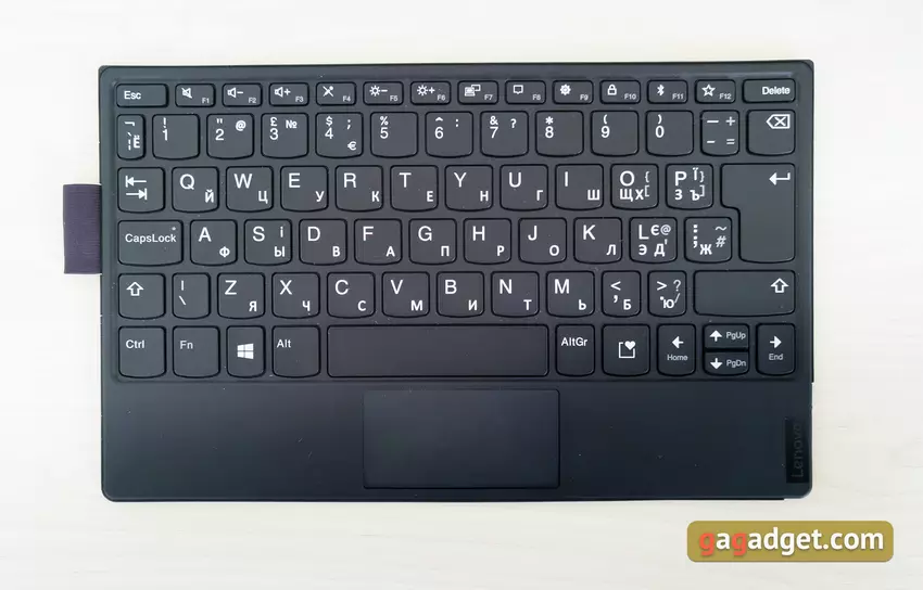 Die Hauptschwierigkeit liegt in der Tastatur mit dem Touchpad. Die Ingenieure mussten es klein machen. Darunter litten das Layout, die Größe der Tasten, der Abstand zwischen den Tasten und der Hub der Tasten. Für einige Tasten ist überhaupt kein Platz und sie funktionieren über Fn. Während der Nutzung (etwa eine Woche) ist es mir nicht gelungen, mich an die Tastatur zu gewöhnen und schnell zu tippen. Für kleine Textmengen (zum Beantworten von Emails und Nachrichten) reicht sie aus. Aber für große Texte - sehr fragwürdig.