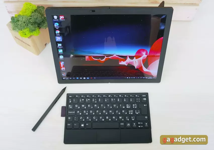 - Es kann als Tablet und als ultrakompaktes Notebook verwendet werden.
