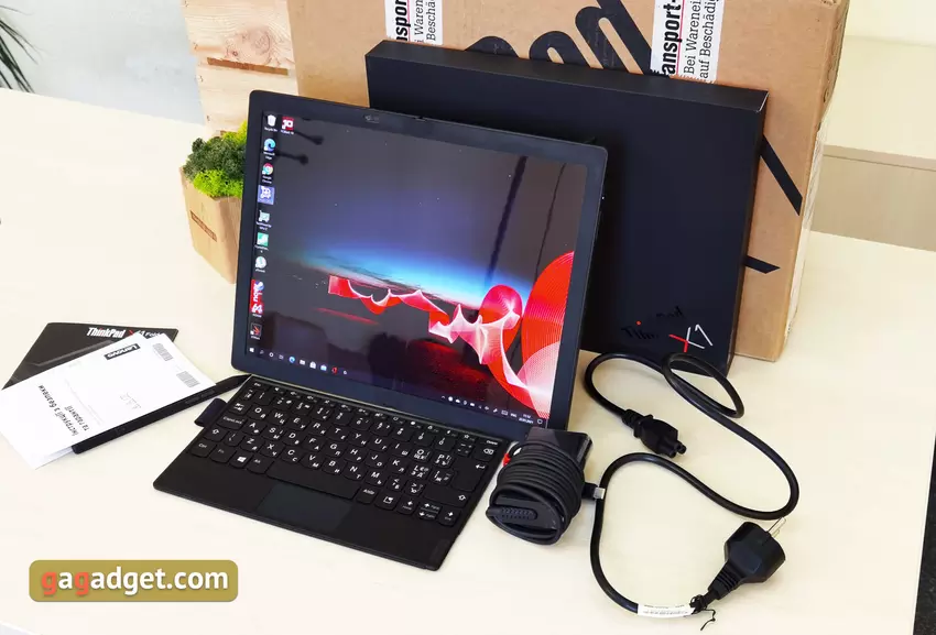 Das Gerät ist ähnlich verpackt wie die Top-Laptops der ThinkPad-Reihe: ein senffarbener Außenkarton und ein schwarzer Innenkarton mit dem X1-Logo. Das Paket enthält das Lenovo ThinkPad X1 Fold selbst, eine kabellose Tastatur mit Touchpad, einen gebrandeten Stylus, ein 65-W-Type-C-Netzteil, ein Netzkabel und eine Dokumentation. Wahrscheinlich gibt es auch andere Kit-Optionen (zum Beispiel ohne den Stylus).