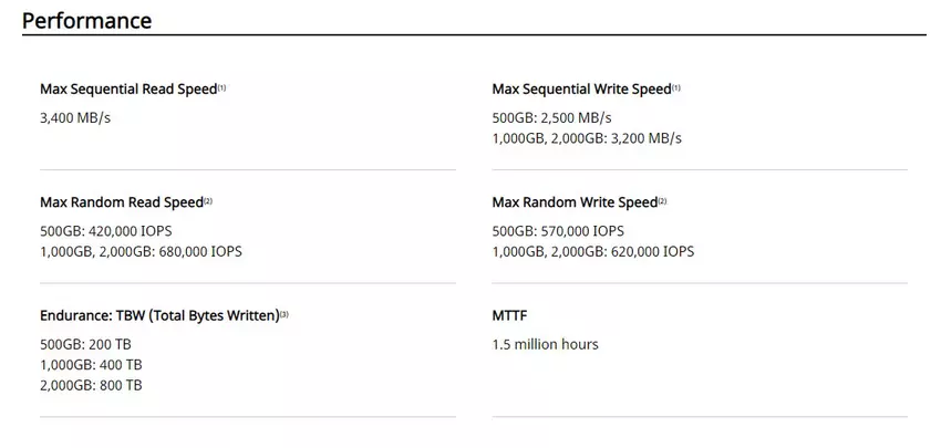 - Die maximale Lesegeschwindigkeit beträgt 3400 MB/s und sie ist stabil. Die maximale Schreibgeschwindigkeit beträgt 3200 MB/s, fällt aber bei linearem Schreiben, wenn der SLC-Cache voll ist, auf durchschnittlich 1200 MB/s ab.
