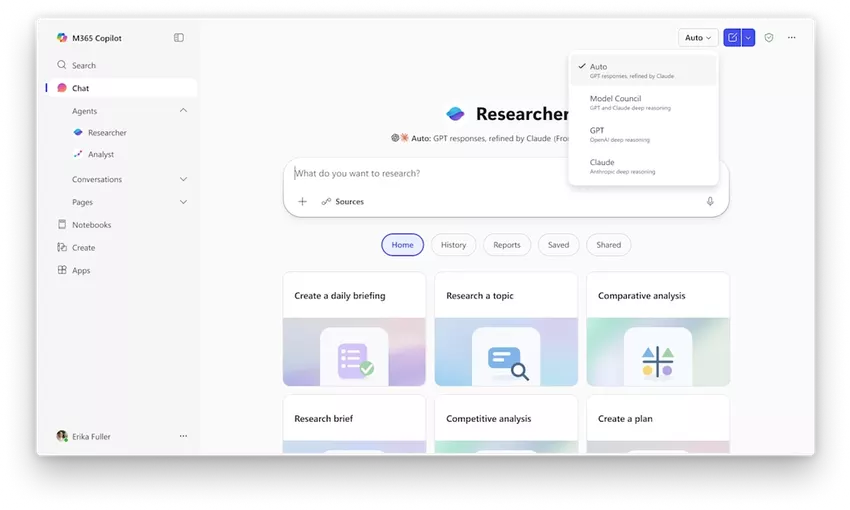 Darüber hinaus hat Microsoft eine alternative Funktion, Model Council, eingeführt. Damit können Antworten gleichzeitig von zwei Modellen, OpenAI und Anthropic, empfangen werden, mit gleichzeitiger Anzeige ihrer Schlussfolgerungen und Abweichungen als separater Bericht.