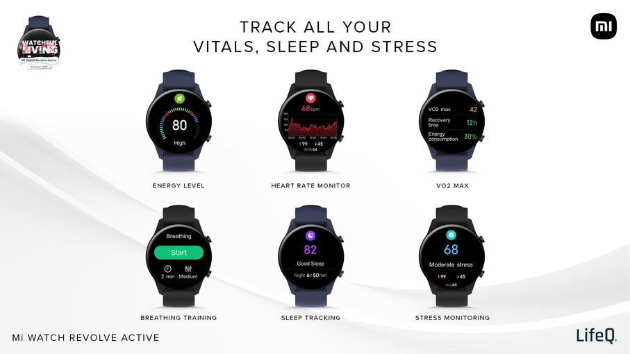 Die Neuheit ist in der Lage, den Sauerstoffgehalt im Blut (SpO2), Schlaf, Herzfrequenz, Stress und VO2 Max zu messen. Das Gerät verfügt über 117 Sportmodi, 110 voreingestellte Watchfaces und Amazon Alexa. Es kann zur Steuerung anderer smarter Geräte des Unternehmens verwendet werden. Die Xiaomi Mi Watch Revolve Active hat keine Angst vor Wasser (5ATM). Sie zeigt Uhrzeit, Benachrichtigungen, Wetter und mehr an.