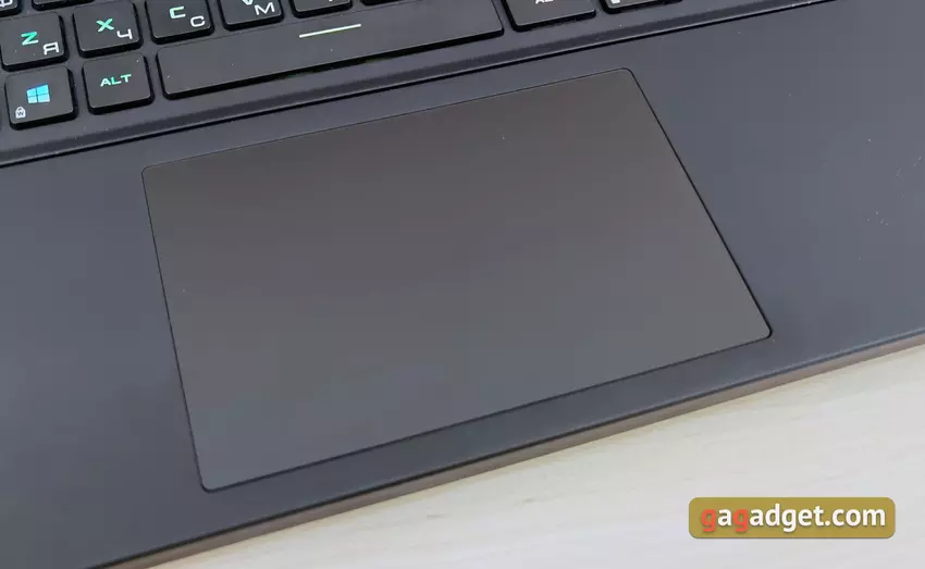 Das Touchpad soll 25 % größer sein als bei der letzten Generation. Sie ist aus Glas, hat eine schöne matte Oberfläche und eine ausgezeichnete Empfindlichkeit. Außerhalb von Spielen reicht es wirklich für komfortables Arbeiten aus, und es besteht keine Notwendigkeit, eine Maus anzuschließen.