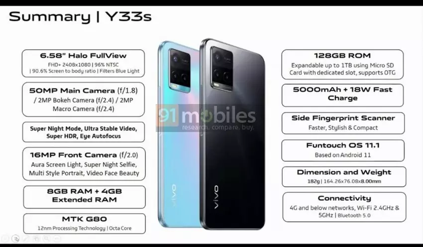 Das Vivo Y33s wird am 23. August vorgestellt: Es verfügt über den Helio G80-Chip von MediaTek, 12 GB RAM, einen 5000-mAh-Akku und eine 50-MP-Kamera
