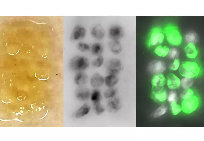 ELM werden mit Hilfe gentechnisch veränderter Bakterien Komagataeibacter rhaeticus hergestellt, um fluoreszierende dreidimensionale Kulturen - Sphäroide - zu erzeugen. Mit einem Perforator beschädigten die Forscher eine dicke Schicht von Bakterienzellulose und setzten frisch gezüchtete Sphäroide in die Löcher ein. Nach einer dreitägigen Inkubationszeit erholte sich das Material strukturell stabil und seine Konsistenz und sein Aussehen waren wiederhergestellt.
