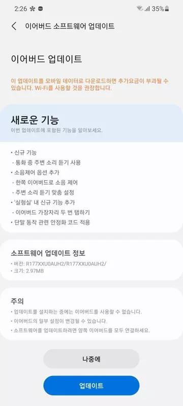 Das System hat die Build-Nummer R177XXU0AUH2 und wurde bisher nur in Südkorea veröffentlicht. Die wichtigste neue Funktion ist die Möglichkeit, den "Transparenz"-Modus (auch bekannt als Ambient Sound) bei Anrufen zu aktivieren. Nach dem Update gibt es auch die Möglichkeit, die Geräuschunterdrückung (ANC) über einen Kopfhörer zu aktivieren, sowie die Möglichkeit, den Doppeltipp an den Rändern zur Einstellung der Lautstärke neu zu konfigurieren. Das Update sollte in den kommenden Tagen auch in anderen Regionen verfügbar sein.