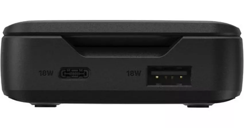 Das neue Produkt verfügt über ein 2-in-1-Design. Es ist eine Powerbank und eine kabellose Ladestation für Ihr Smartphone. Sie können Ihr Gerät kabellos mit einer Leistung von bis zu 10 Watt aufladen. Die Leistung beträgt bis zu 18 W, wenn Sie das Gerät über USB-A oder USB-C betreiben.
