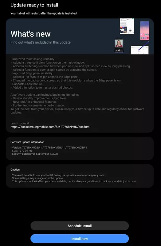 Wir sprechen von den Modellen Galaxy Tab S7, Galaxy Tab S7+ und Galaxy Tab S7 FE. Das System hat die Build-Nummer T976BXXU2BUI1 und wiegt über 1 GB.