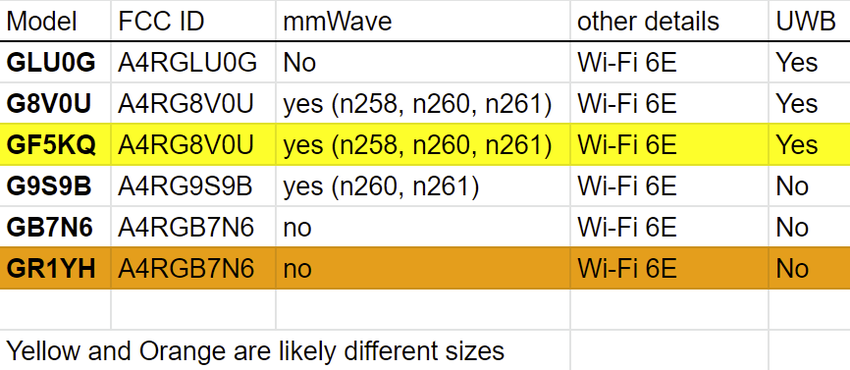In den FCC-Dokumenten sind keine detaillierten Angaben zu den neuen Geräten zu finden, aber es heißt, dass die Smartphones sowohl Wi-Fi 6E als auch die Ultrabreitband-Technologie unterstützen werden (Ultra-wideband).