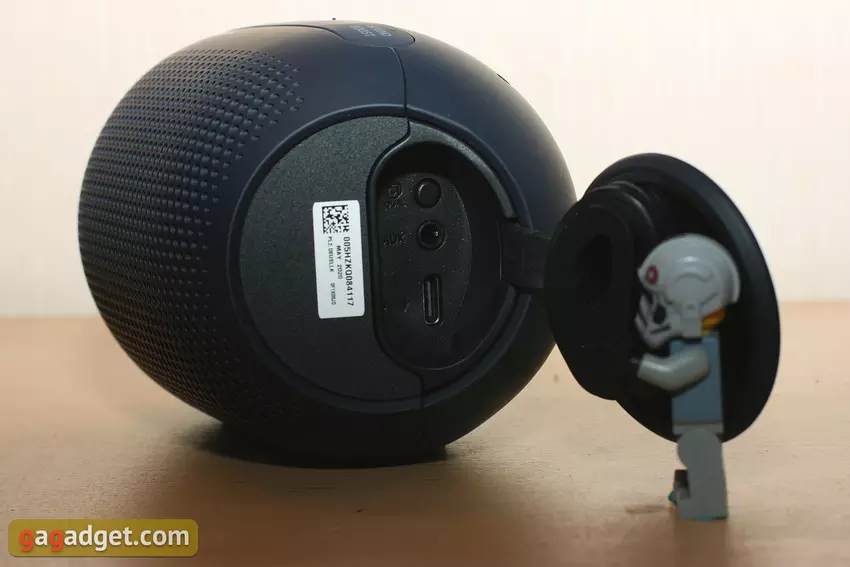 Aufgrund des Aussehens, der gummierten Tasten und Stecker könnte man annehmen, dass die Lautsprecher fast unter Wasser gehört werden können. Dies ist jedoch nicht der Fall - der garantierte Schutzgrad beträgt nur IPX5. Das reicht jedoch völlig aus, um den Redner vor dem Regen zu schützen, der plötzlich über die Gruppe hereinbrach.
