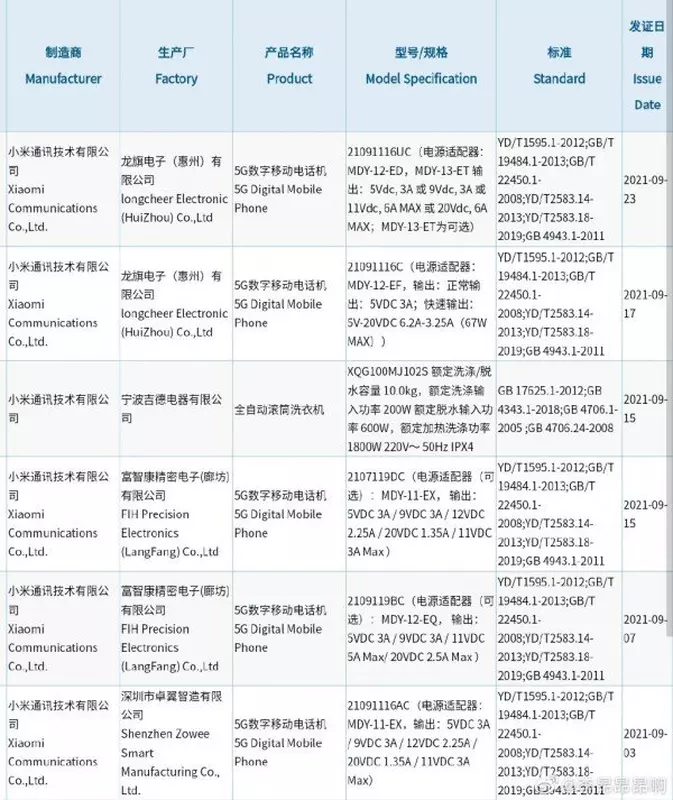 Das Gerät hat kürzlich die 3C-Zertifizierung in China erhalten. Die Neuheit hat die Modellnummer 20191116C und wird laut dem Leak eine Ladeleistung von 120W haben. Im Vergleich dazu unterstützt das Xiaomi 11T eine maximale Leistung von 67 W.