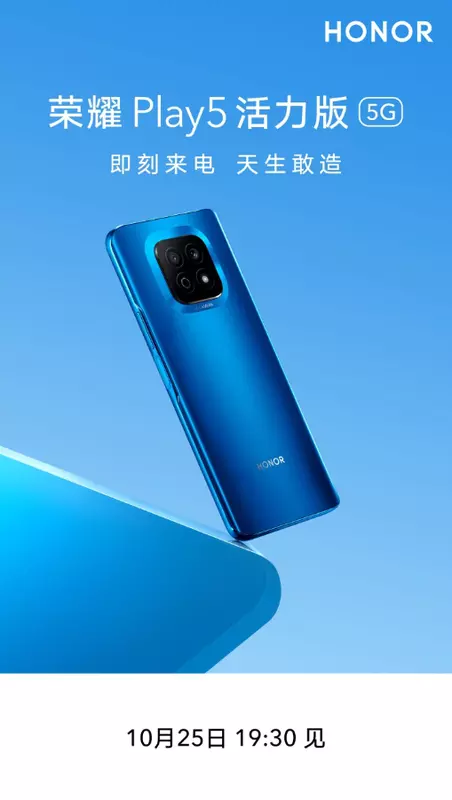zu rechnen? Laut dem offiziellen Poster des Unternehmens wird Honor Play 5 Vitality Edition am 25. Oktober (Montag) erscheinen. Die Veranstaltung findet in China um 19:30 Uhr Ortszeit (14:30 Uhr Kiewer Zeit) statt. Dem Bild nach zu urteilen, wird die Neuheit eine blaue Farbgebung, eine dreifache Hauptkamera sowie einen seitlich angebrachten Fingerabdruckscanner erhalten.