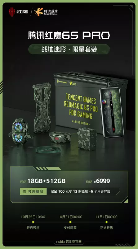 Das Nubia Red Magic 6S Pro Battlefield Camouflage Edition ist nur in der Top-End-Version mit 18 GB RAM und 512 GB internem Speicher erhältlich. Der Verkaufsstart ist für den 1. November vorgesehen. Der offizielle Preis in China beträgt 1.100 Dollar. Das reguläre Modell mit der gleichen Menge an RAM und ROM ist 100 Dollar billiger.