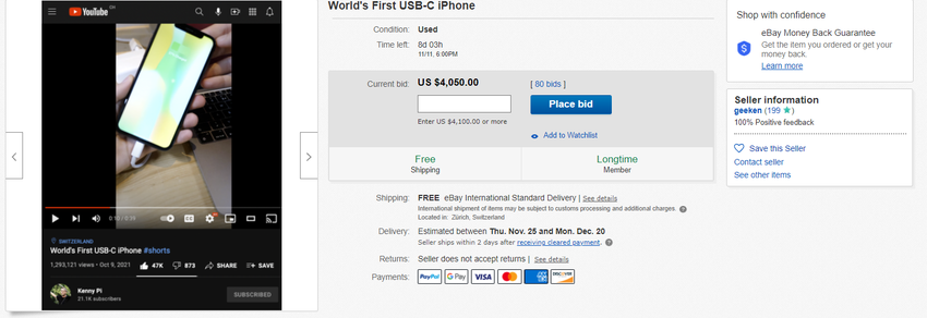 Das erste USB-C-iPhone der Welt kann bei eBay für 4.100 Dollar gekauft werden