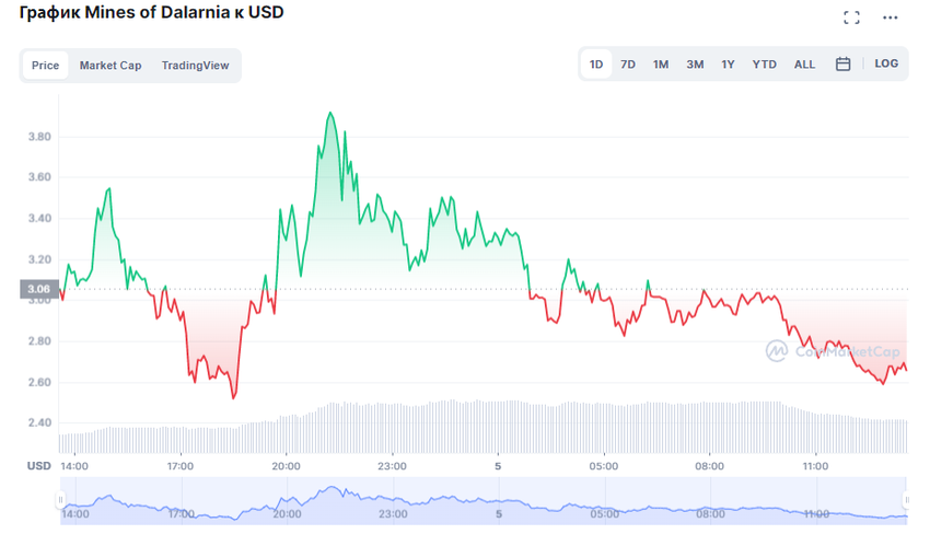 Die Kryptowährung Mines of Dalarnia wurde am 4. November um 10:00 Uhr Kiewer Zeit auf Binance notiert, wodurch ihr Preis um 72.900 % stieg.