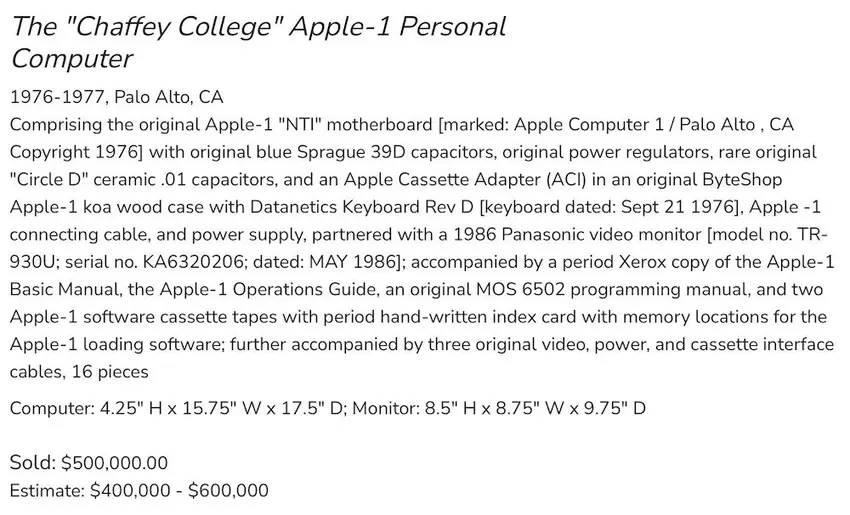 Apple I Computer in Holzkiste für 500.000 Dollar versteigert