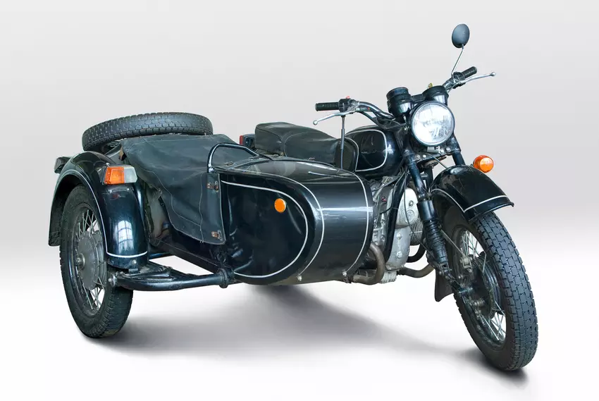 Erinnere dich an gute alte Motorräder "Dnjepr" mit Kinderwagen wurden produziert am Kiew Motorradwerk mit 1968 bis 2012. Ebenso gut wie so beliebte motorräder wie